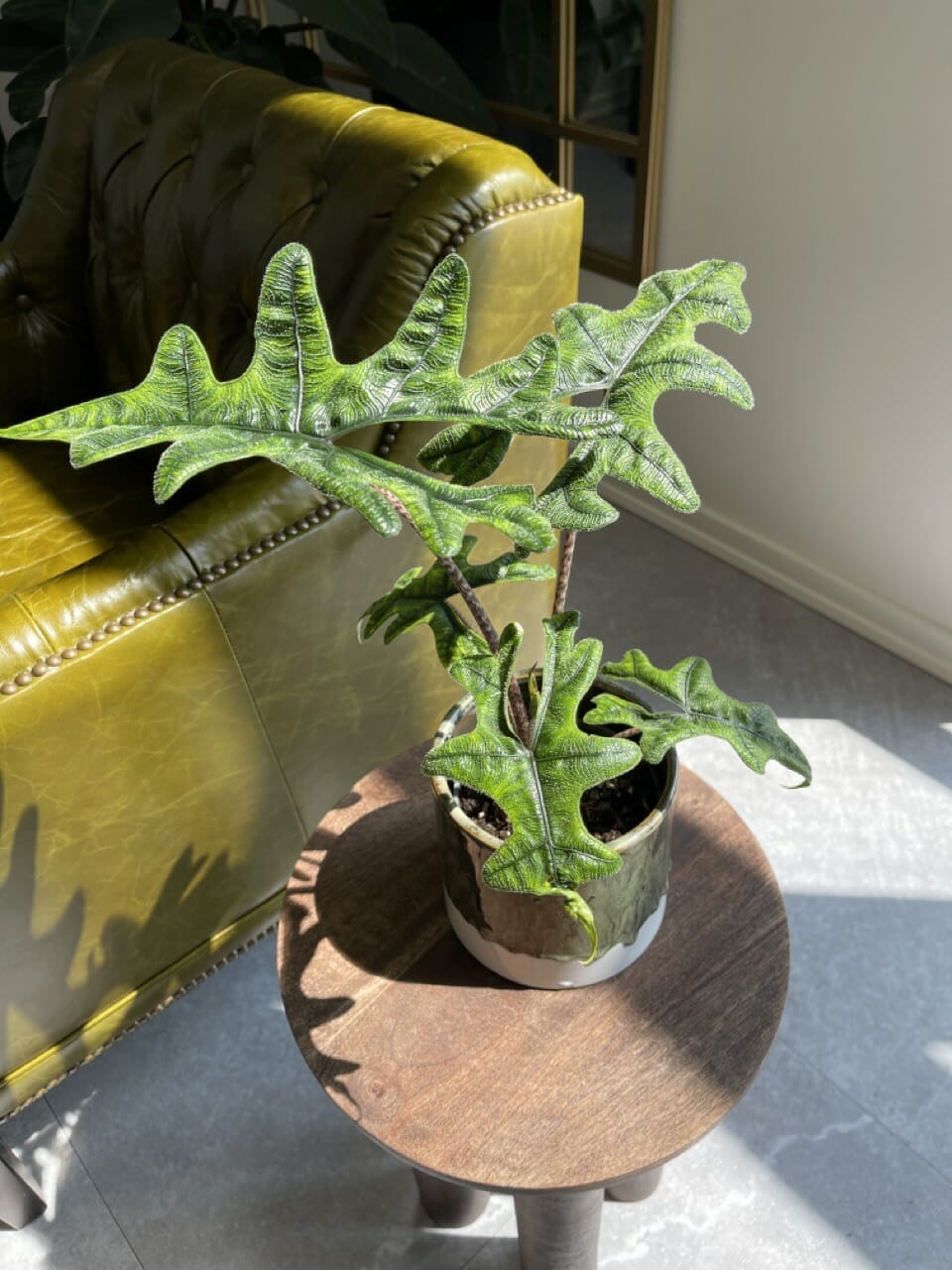 Alocasia Jacklyn, en fængslende aroid, der helt sikkert vil gøre sig godt i enhver plantesamling. Denne sjældne og meget eftertragtede sort er værdsat for sit unikke og usandsynlige udseende.