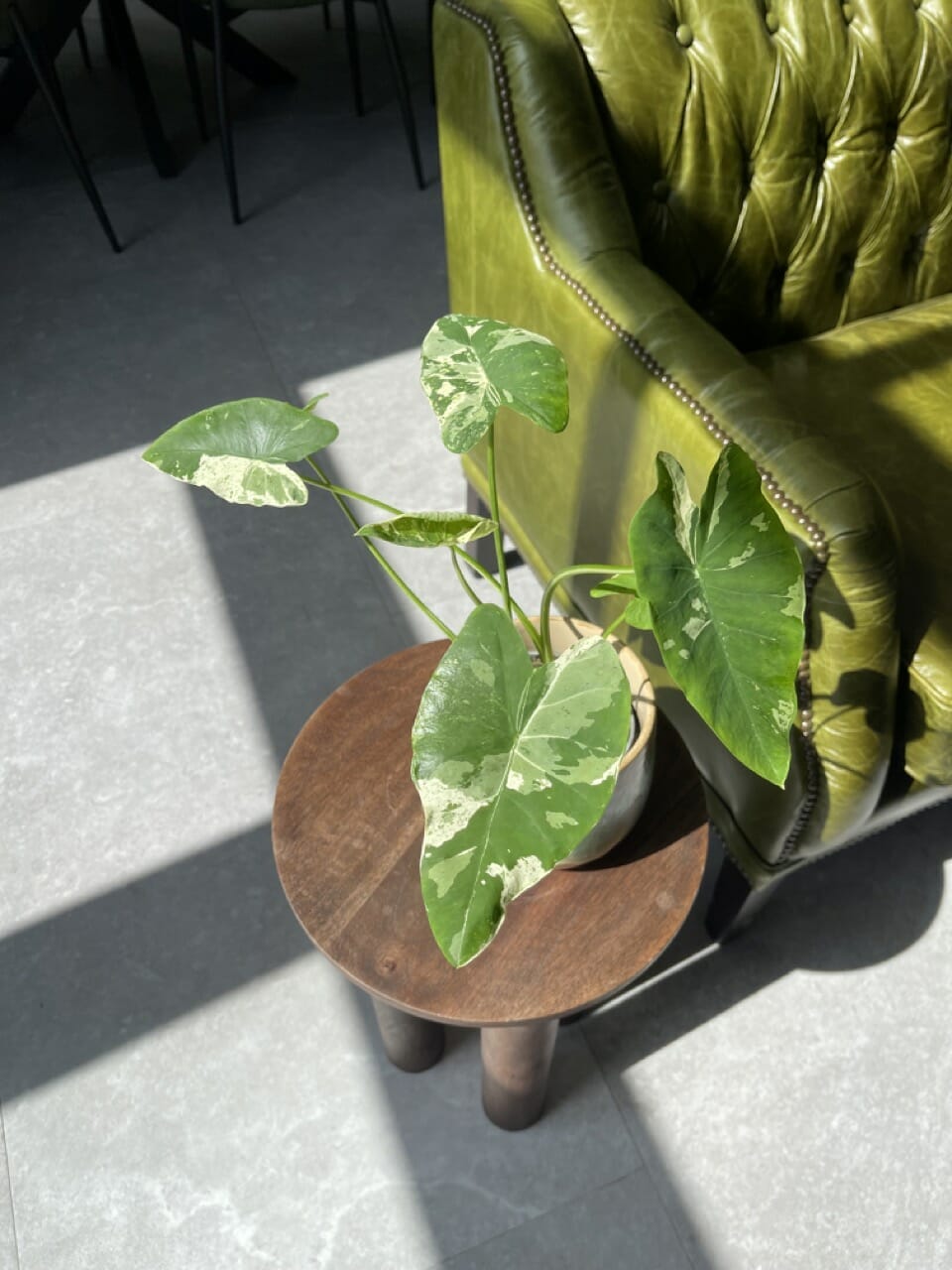 For at holde Alocasia Silver River Variegata glad skal du sørge for stærkt indirekte lys og opretholde et fugtigt miljø. Det er vigtigt at vande regelmæssigt og lade den øverste tomme af jorden tørre mellem vandingerne.
