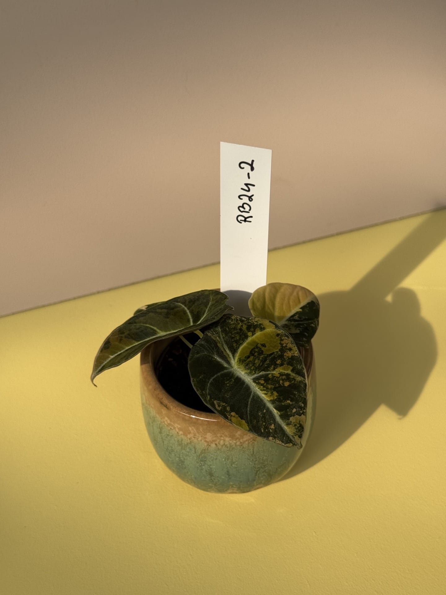 Denne Alocasia-sort trives i stærkt, indirekte lys, men kan tåle halvskygge. Den foretrækker let fugtig jord og regelmæssig vanding, så den øverste tomme af jorden kan tørre ud mellem vandingerne.