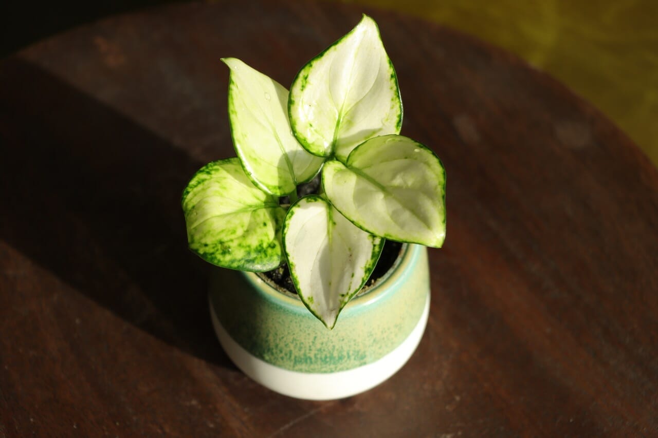 - Vanding – Vand en gang om ugen, og sørg for ikke at overvande, lad planten absorbere alt vandet inden for få timer. Hvis der er vand tilbage, skal du hælde resten ud. Prøv med 100-200 ml til mellemstore potter (10-12 ø cm potter) og 50 ml til miniplanter (6 cm). Efter nogle dage vil jorden begynde at tørre ud, og her skal du sørge for, at jorden forbliver lidt fugtig, da det kan give brune spidser på bladene, hvis jorden tørrer helt ud. I vinterperioder med mindre vækst kan du vente lidt længere mellem vandingerne, men jorden skal stadig være fugtig.