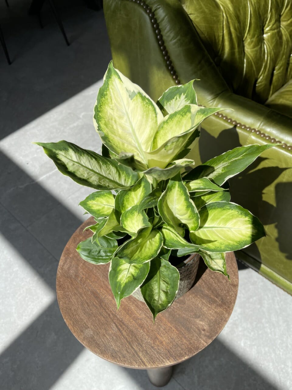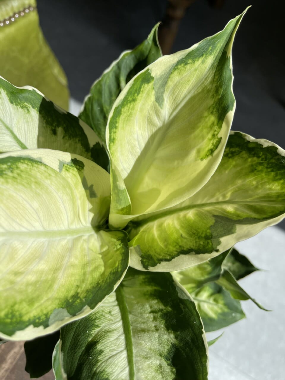 Til pasning af Dieffenbachia “Cool Beauty” skal man sørge for stærkt, indirekte lys og en regelmæssig vandingsrutine. At lade den øverste tomme af jorden tørre mellem vandingerne hjælper med at forhindre overvanding.