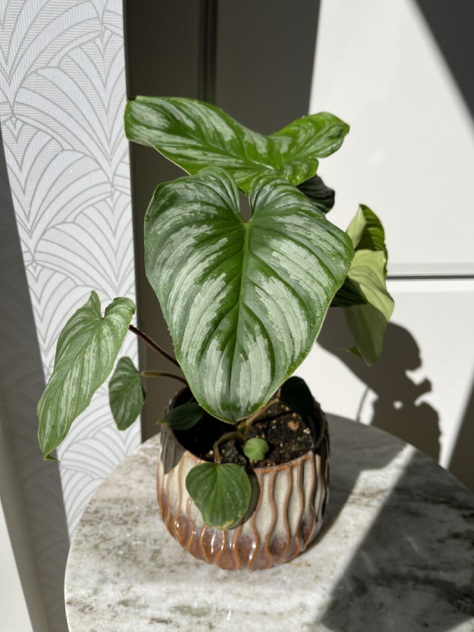“Cool Beauty” har et tydeligt broget mønster, som giver den et sofistikeret udtryk. Bladene har en harmonisk kontrast mellem den dybgrønne baggrund og de indviklede hvide pletter, der ligner sarte snefnug på et frodigt lærred.