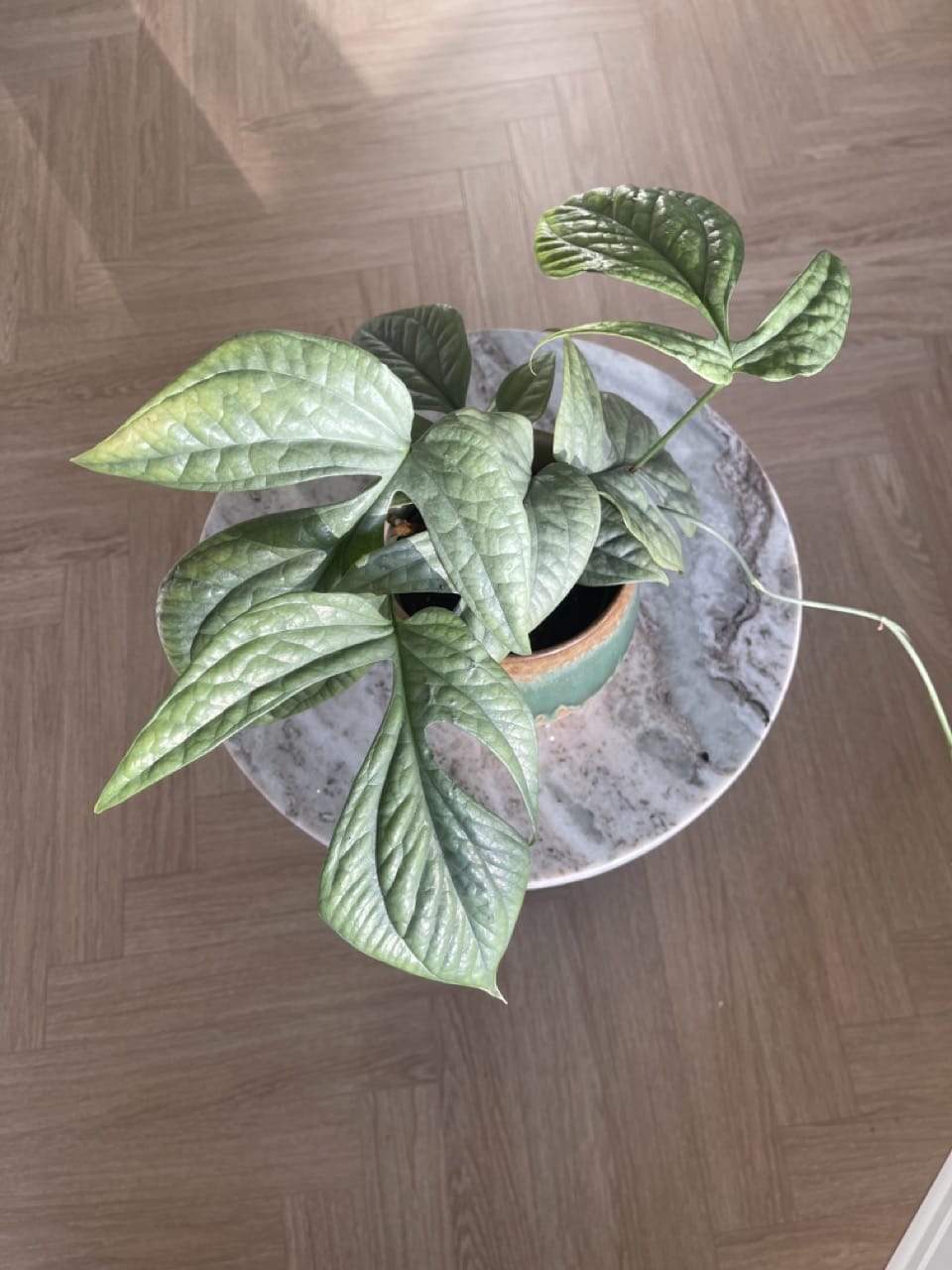 Monstera Amydrium Medium Silver, en helt unik tilføjelse til enhver plantesamling. Denne ekstraordinære Monstera-sort har en fascinerende blå/sølv farve, der adskiller den fra de traditionelle grønne planter. Dens blade har en krokodilleskindslignende tekstur, der tilføjer et spændende touch til dens allerede fantastiske udseende.