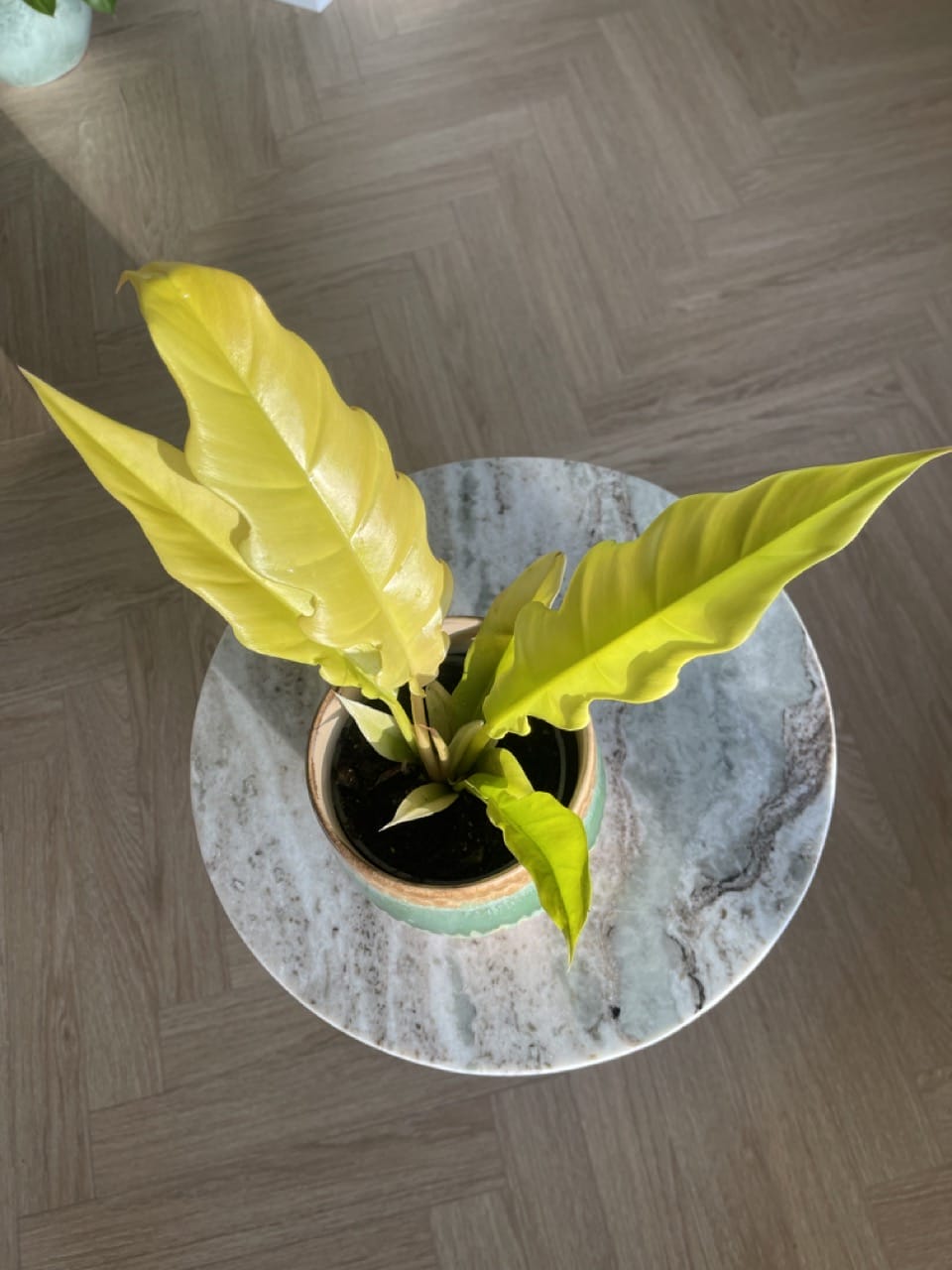 Denne filodendronsort er skræddersyet til dem, der ønsker et stænk af levende farver i deres plantesamling. Dens kompakte størrelse og strålende farve gør den til et perfekt valg til bordplader, hylder eller som et fokuspunkt i ethvert veloplyst rum.