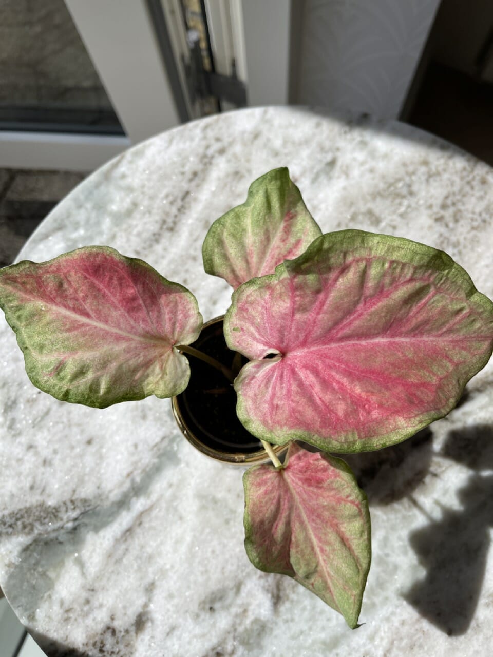 They prefer well-drained soil and partial shade, making them popular as houseplants or in shaded garden beds. Especially in small pots, this plant requires a green thumb, and experiences higher growth in spring and summer than in winter. Some Caladium only keeps few leaves during month with less sun, however, at House of Botanique, all plants are shipped with a higher number of leaves, like you see in the pictures.