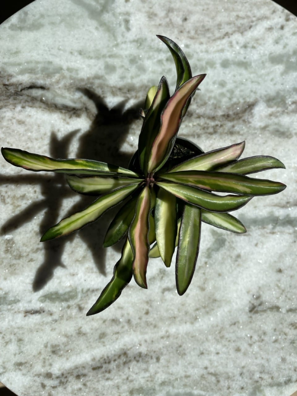 - Hoya Wayetii Tricolor – Standard Price: 59,95 DKK / 7,99€: Delight in the stunning hues of the Hoya Wayetii Tricolor, featuring pink, cream, white, yellow, and green colors cascading down its trailing vines.