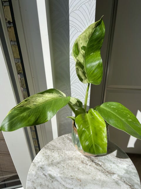 This Philodendron variety typically maintains a moderate size, making it an excellent choice for tabletops, shelves, or as an accent in various settings. Its unique appearance allows it to seamlessly blend into diverse interior environments.