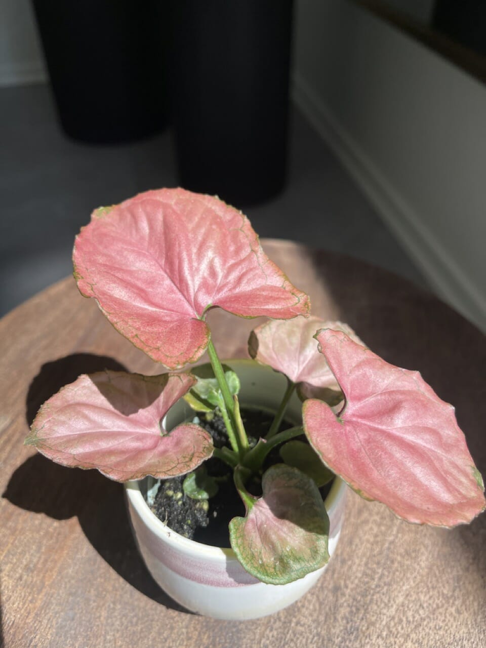 This variety of Syngonium is typically a compact and trailing plant, making it suitable for hanging baskets or as a trailing accent in pots. It is known for its relatively easy care requirements and adapts well to indoor environments. Syngonium Orm Nak Red thrives in bright, indirect light but can tolerate lower light conditions. It prefers slightly moist soil and regular watering, allowing the top inch or so of soil to dry out between waterings.