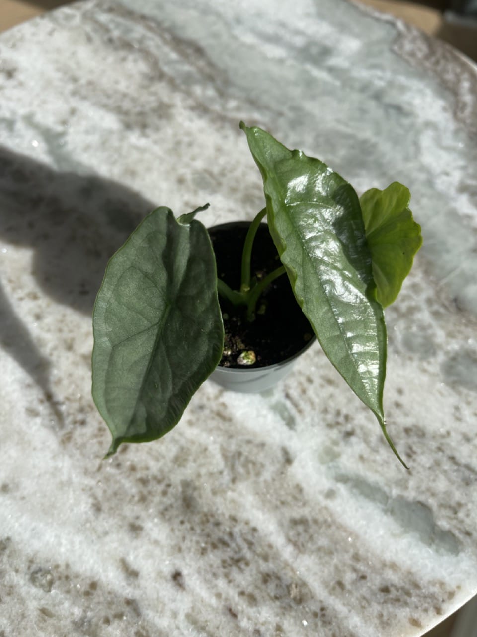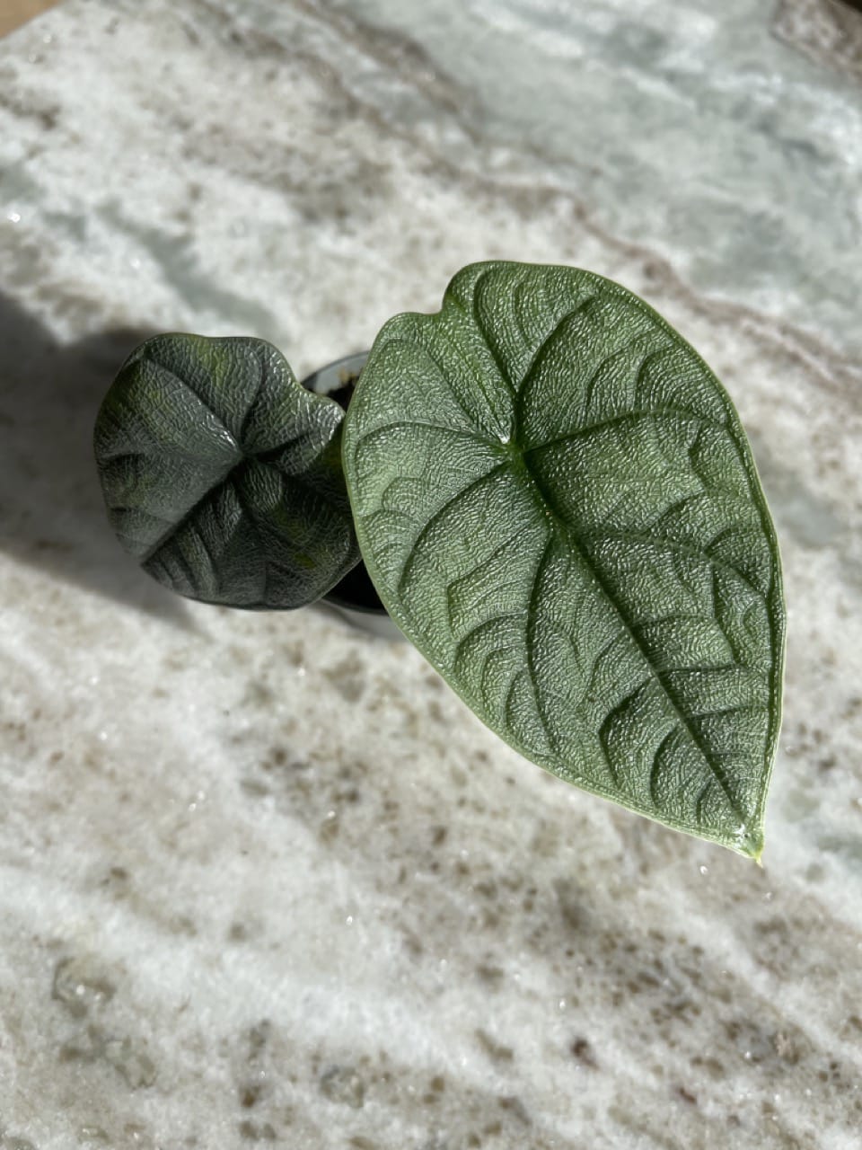 Alocasia Heterophylla Dragon’s Breath – Ø 6cm – Price: 149,95 kr. / 19,99€: Ignite your collection with the fiery allure of the Alocasia Heterophylla Dragon’s Breath, featuring long leaved foliage with strong green, blue and silver tones.