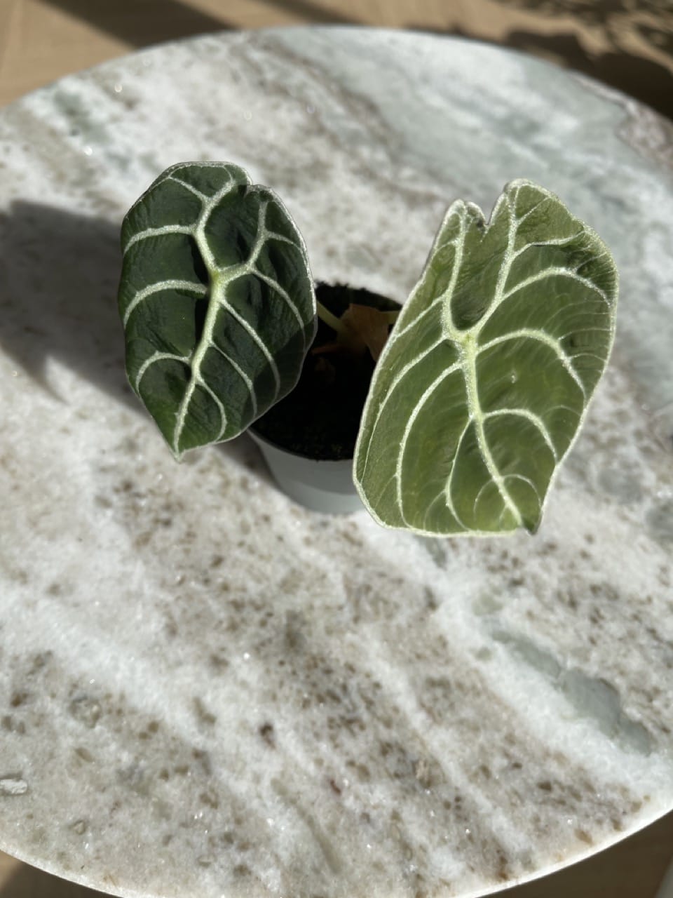Alocasia Melo – Ø 6cm – Price: 74,95 kr. / 9,99€: Delight in the charm of the Alocasia Melo, a petite yet captivating plant that brings a sense of whimsy to any space. With it’s unique texture, which is almost like the skin of an elephant, this Alocasia truly gives the name Elephant’s Ear context.
